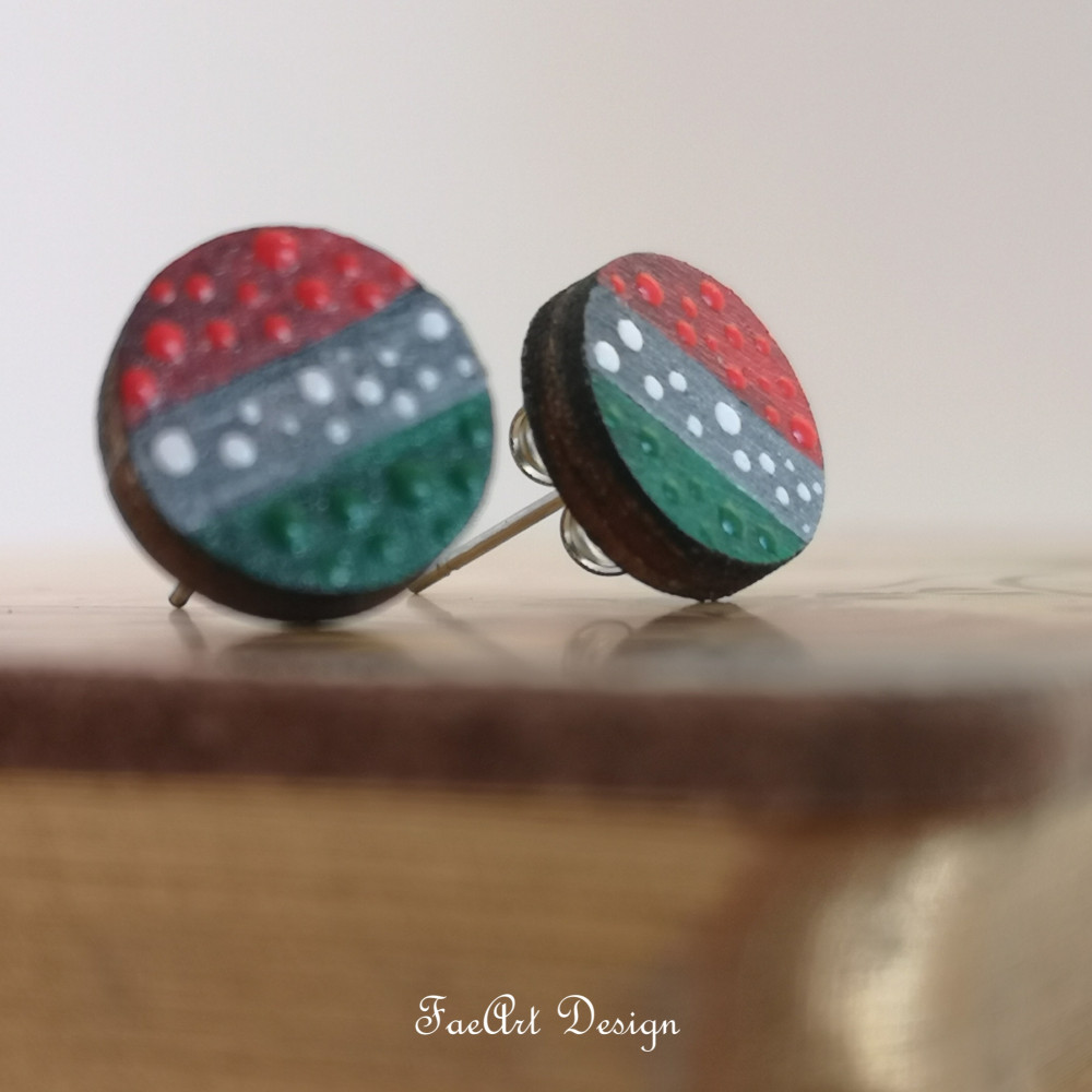 Kézzel festett, beszúrós, fa fülbevaló.