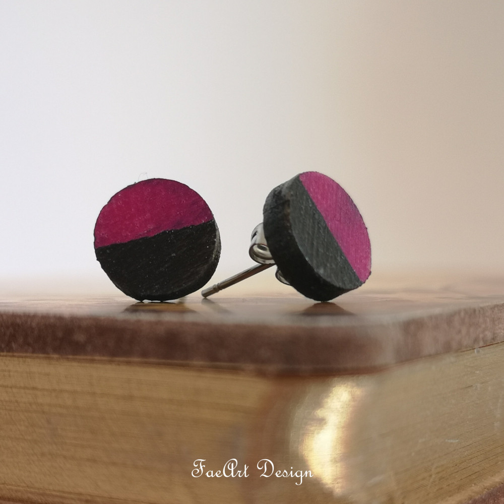 Kézzel festett, beszúrós, fa fülbevaló.