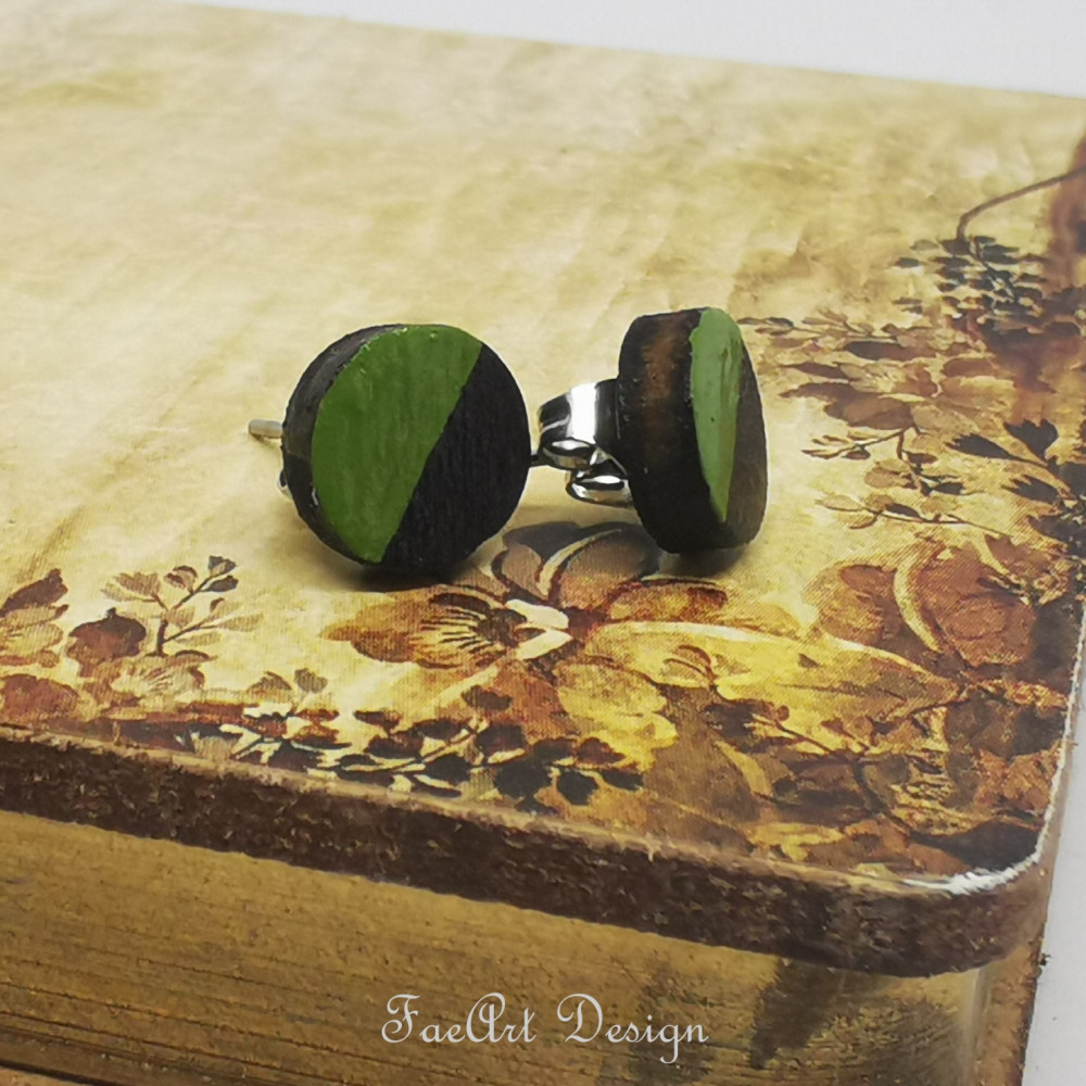 Kézzel festett, beszúrós, fa fülbevaló.