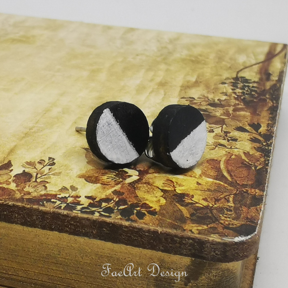 Kézzel festett, beszúrós, fa fülbevaló.