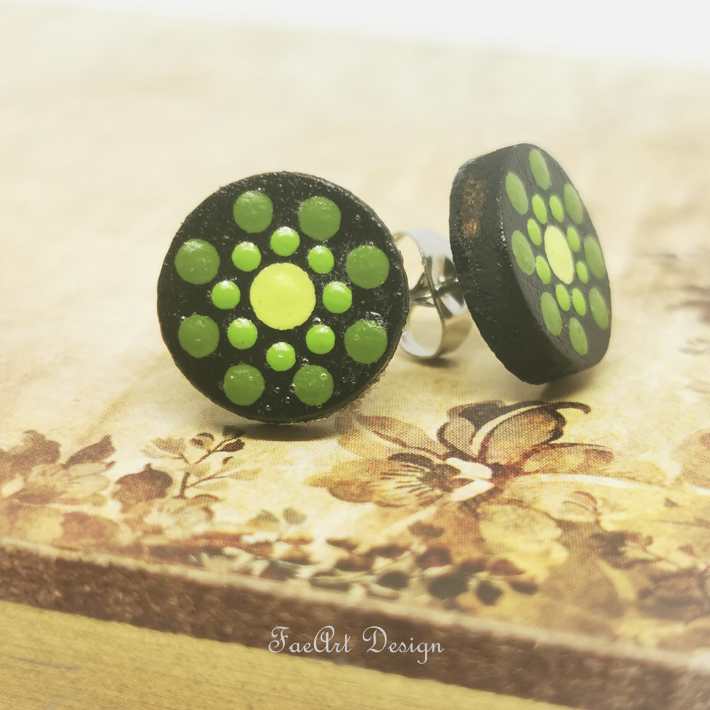 Kézzel festett, beszúrós, fa fülbevaló.