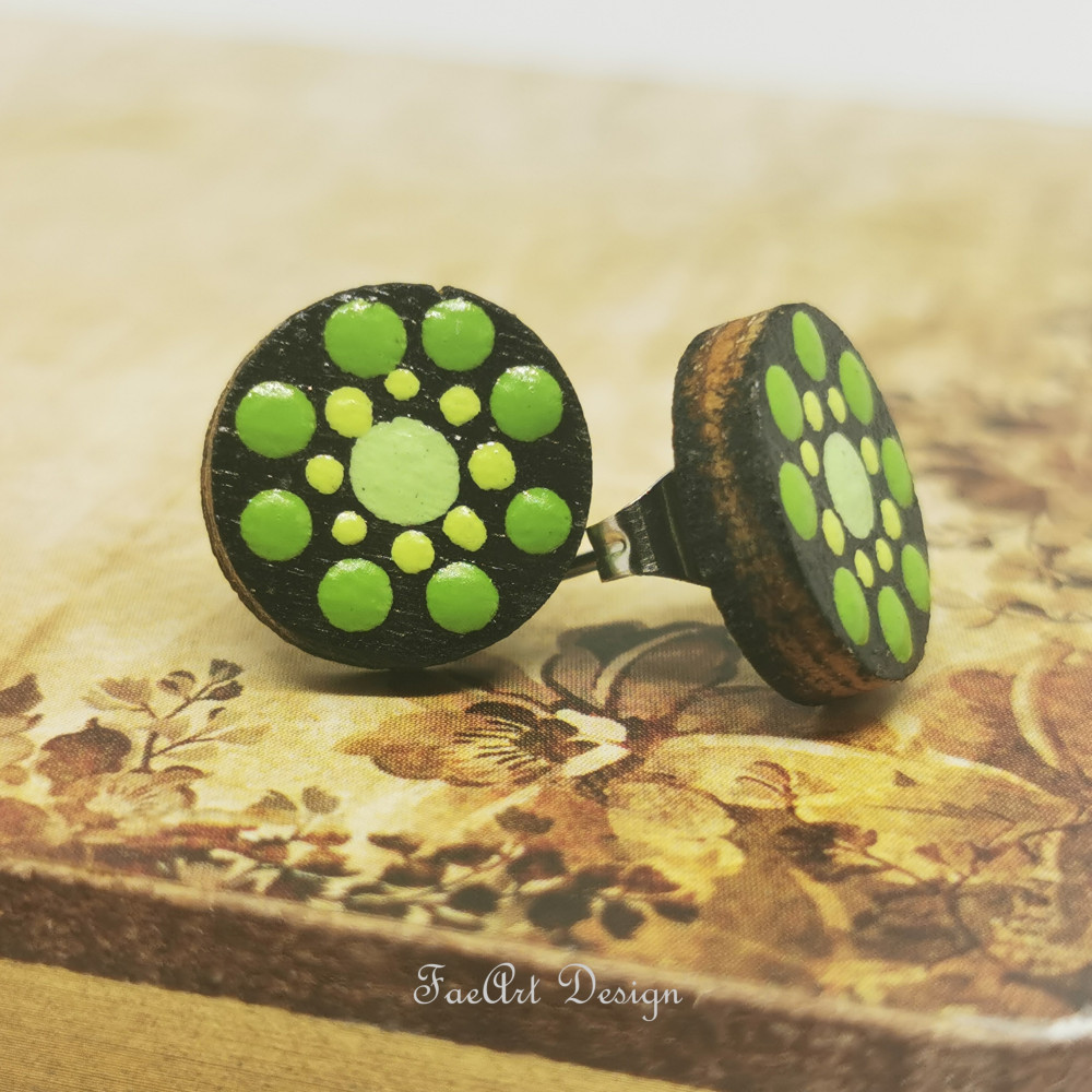 Kézzel festett, beszúrós, fa fülbevaló.