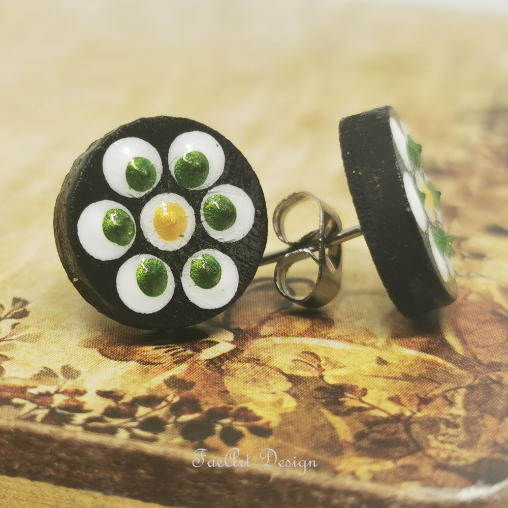 Kézzel festett, beszúrós, fa fülbevaló.