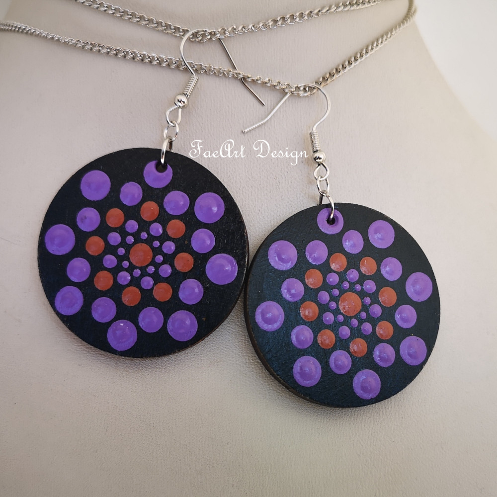 Kézzel festett, fa fülbevaló.