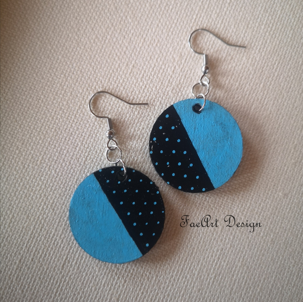 Kézzel festett, fa fülbevaló.