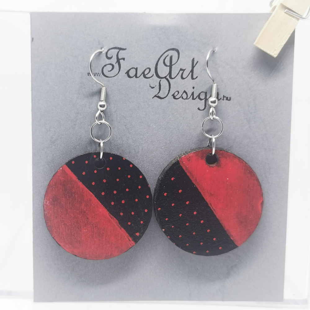 Kézzel festett, fa fülbevaló.