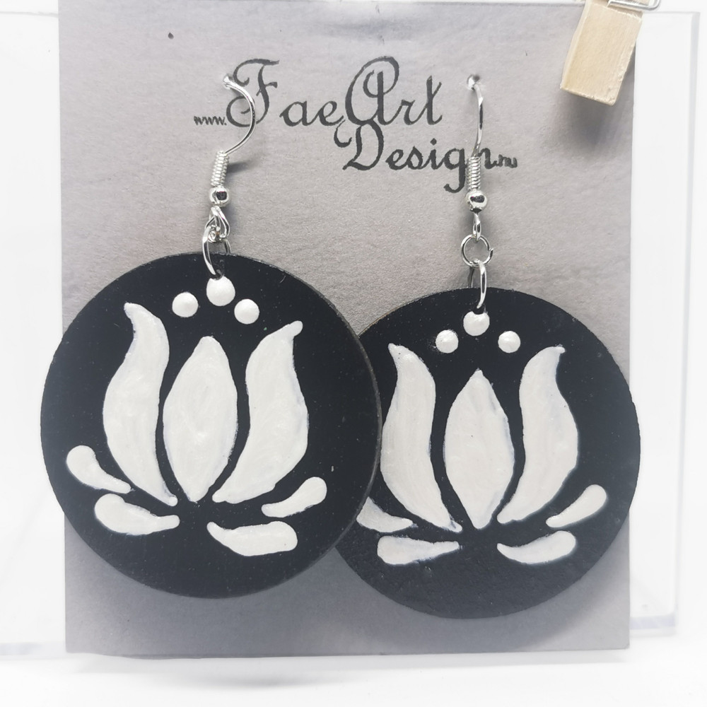 Kézzel festett, fa fülbevaló.