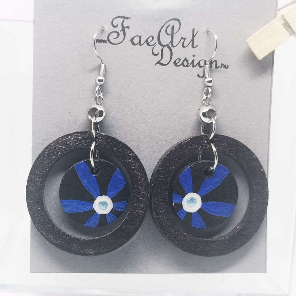 Kézzel festett, fa fülbevaló.