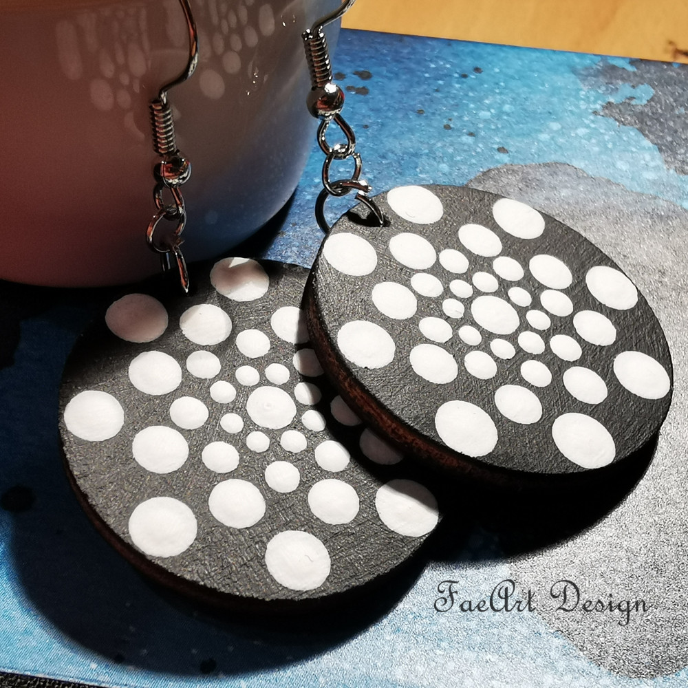 Kézzel festett, fa fülbevaló.