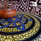 A kelta kultúra ősi szimbólumait idéző kézzel festett mintázat az időtlenség érzését hozza el.