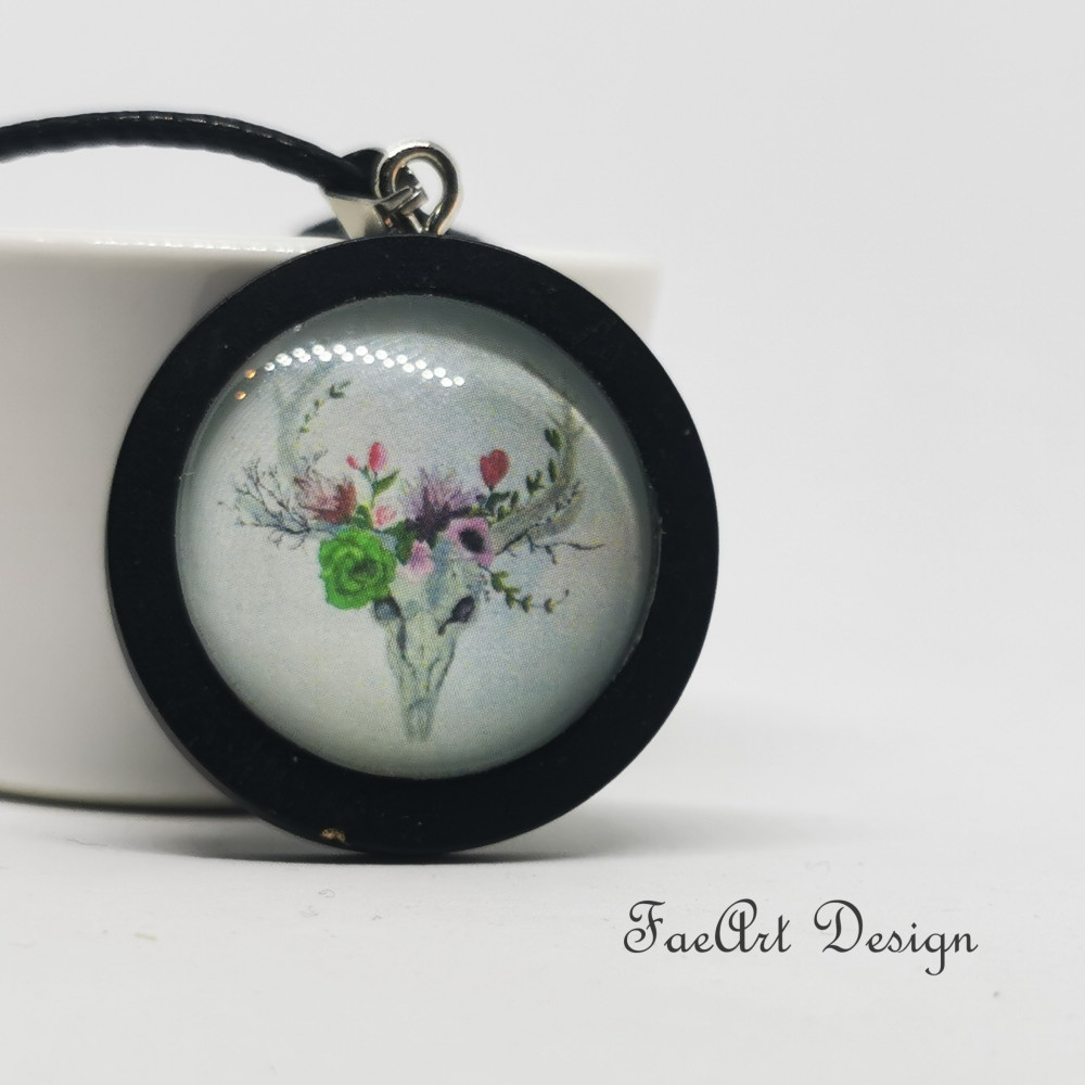 25 mm-es üveglencse alá a festményem fotóját zártam. A textilbőr 45 cm-es, szerelék és kapocs van rajta.
