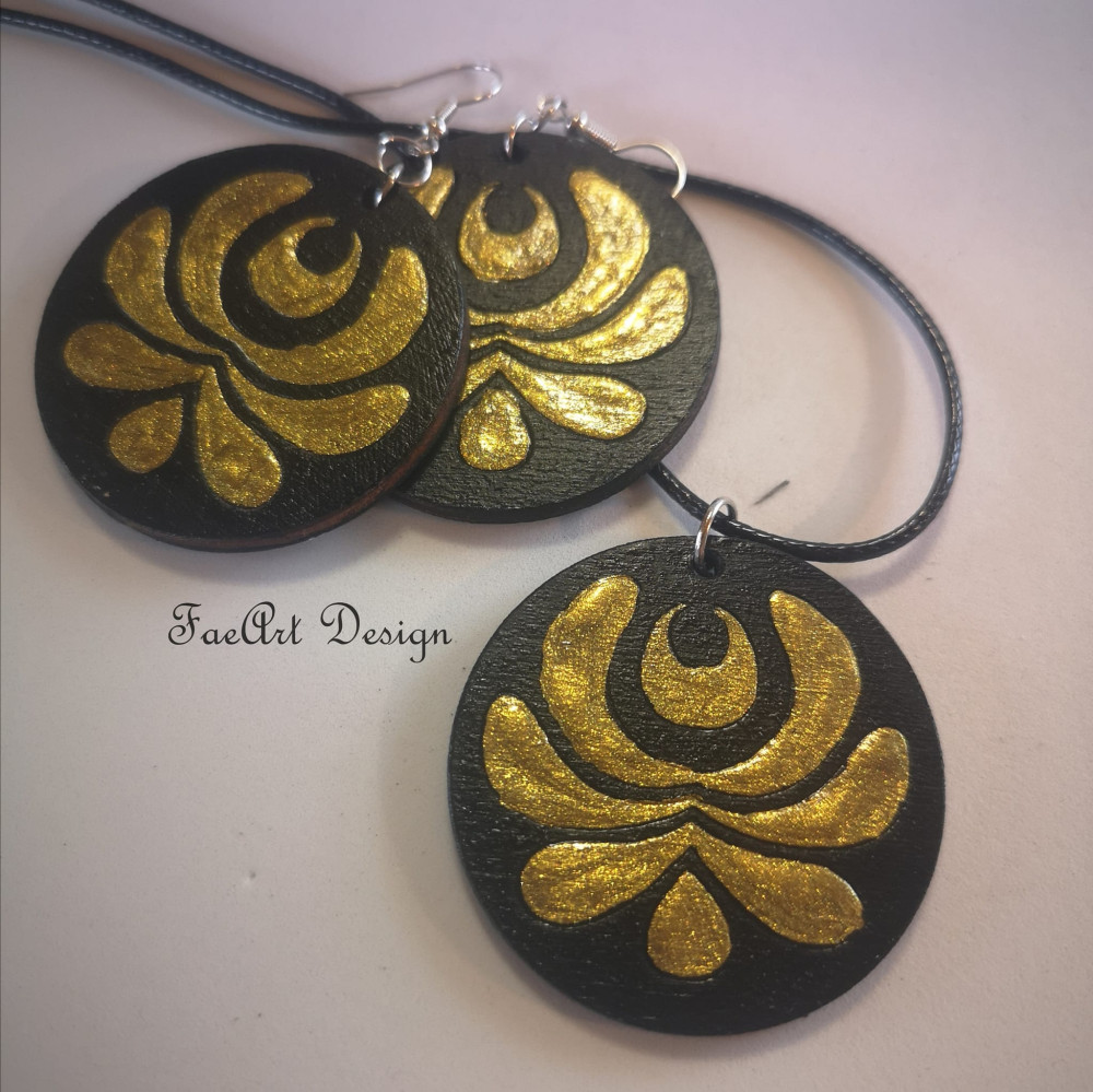 Méret: fülbevaló 45 mm / medál 45 mm / 45+5 cm textilbőr szerelékes lánc